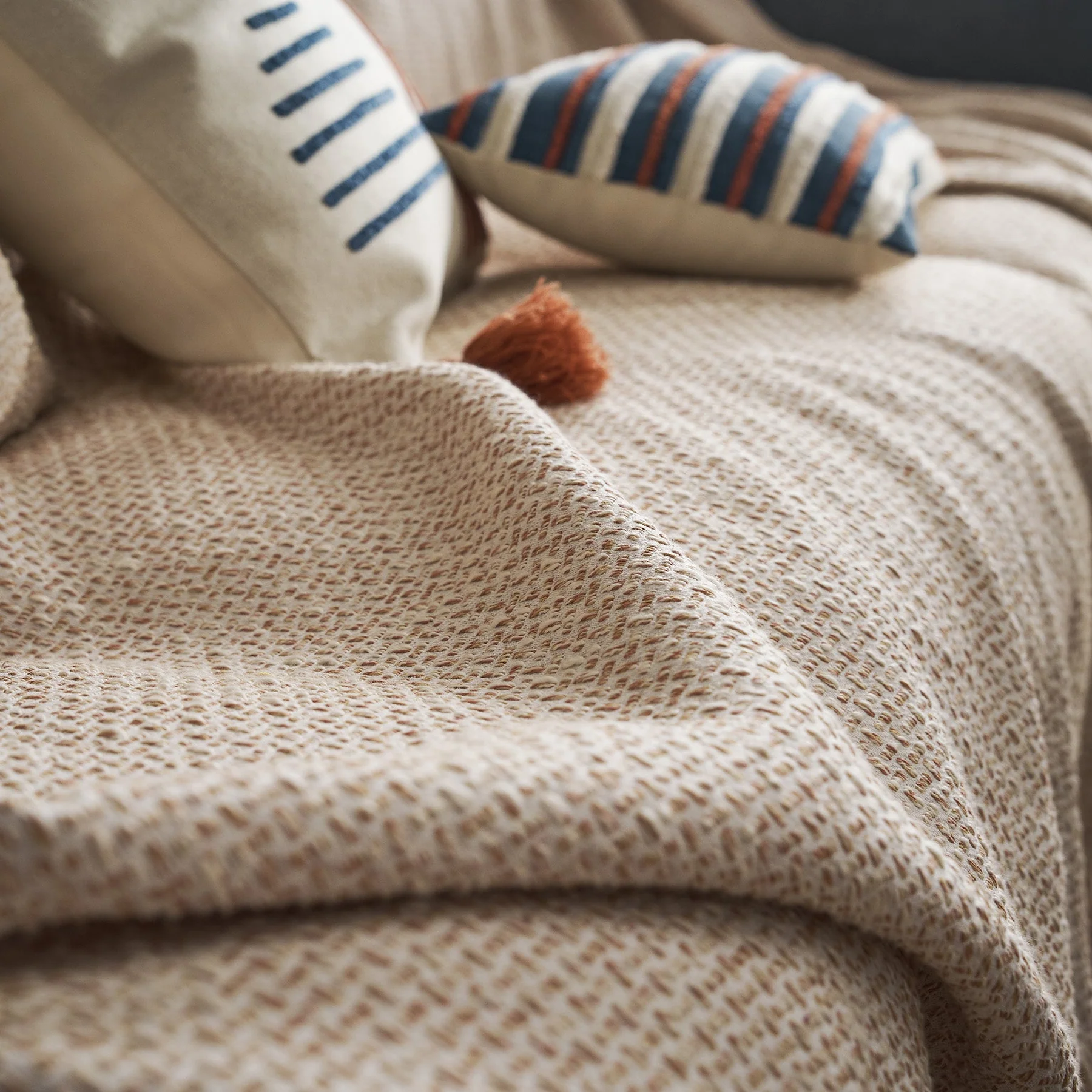 Ελαφρύ και μαλακό ριχτάρι με μοναδική ανάγλυφη ύφανση από πολύκλωνα νήματα. Ιδανικό για όλες τις εποχές του χρόνου.